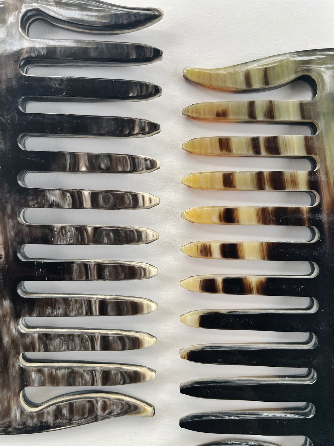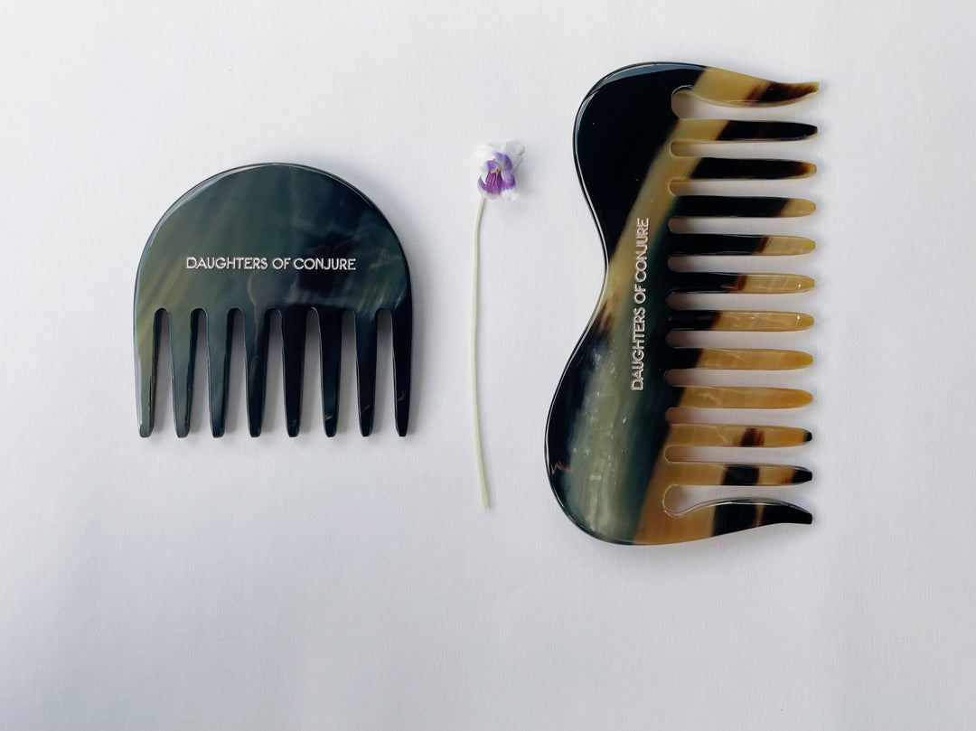 The Half Moon Comb is a hand-carved, wide-tooth comb made from buffalo horn. It is designed to promote strong, healthy hair. Use it to gently work through tangles without causing breakage on both dry and wet hair. The Half Moon Comb can be used to massage and soothe the scalp to increase circulation, nourish roots, and support hair growth. It can also create volume at the root without damaging the hair’s cuticle.
